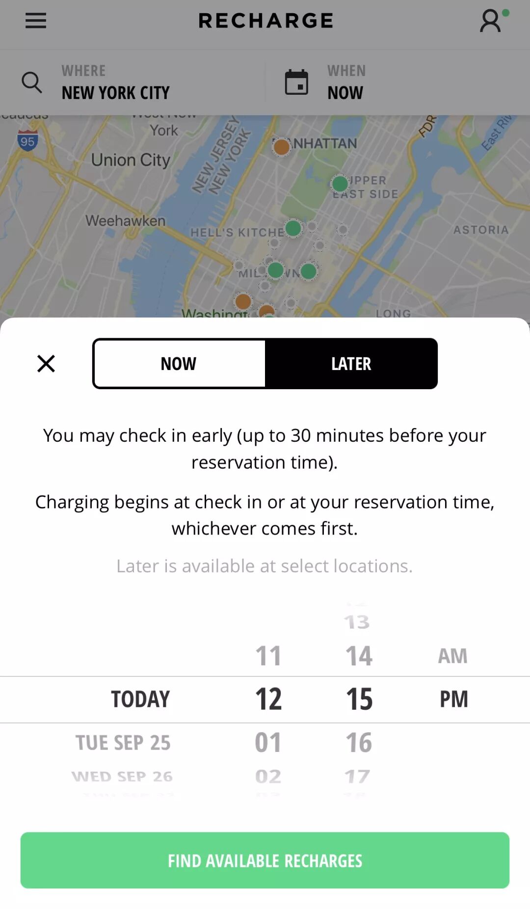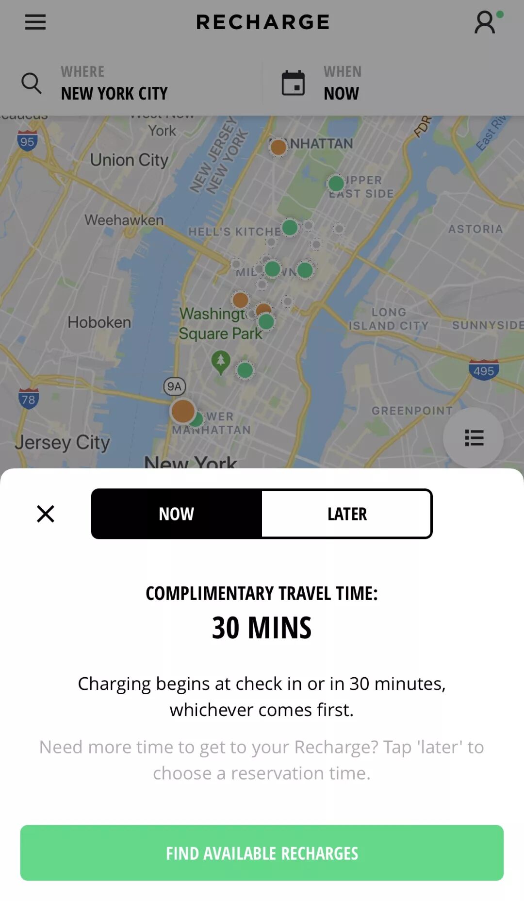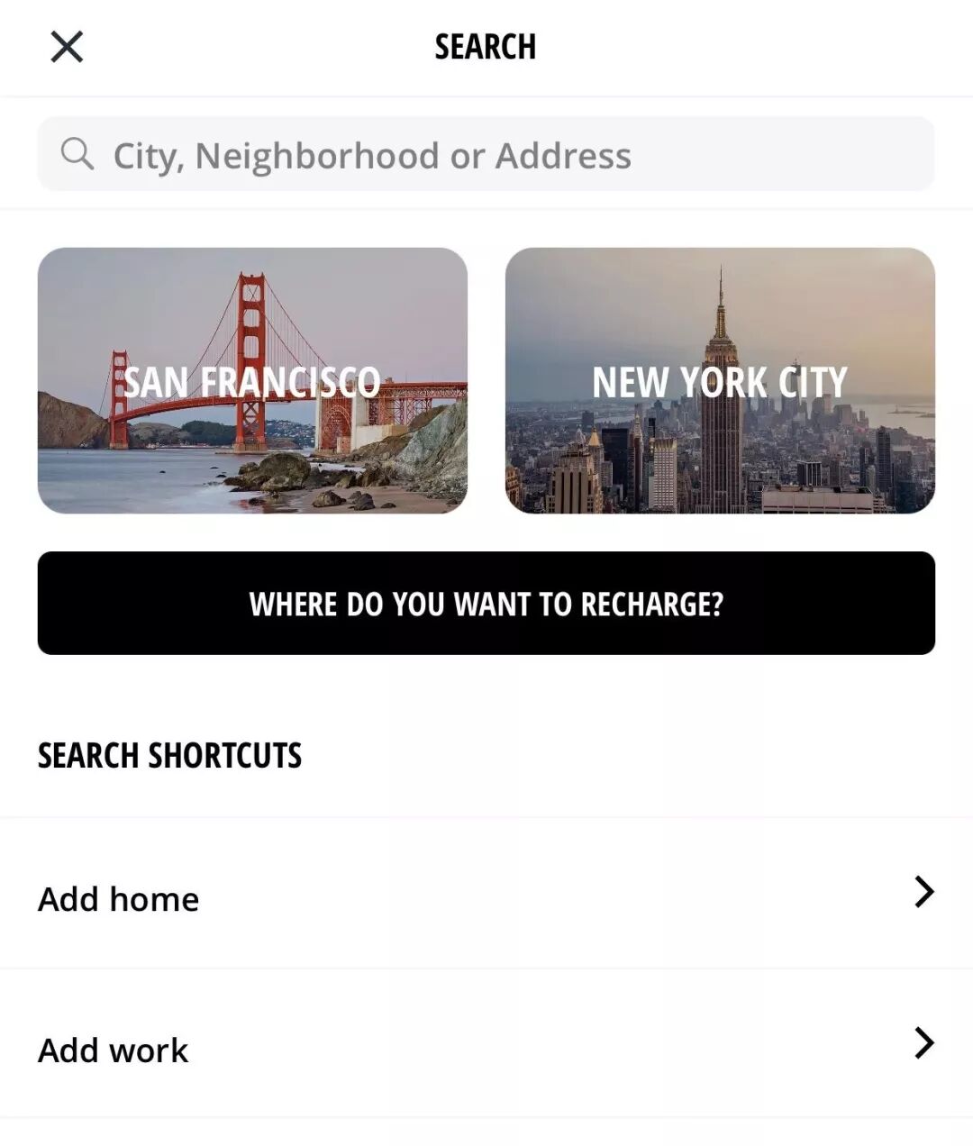1⃣️下载⏬“Recharge App"即可。选择自己的所在城市。目前Recharge已经在三番和纽约开展服务,下一步将进军LA和芝加哥。