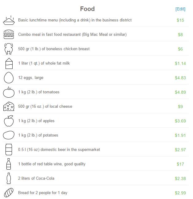 那么在纽约年收入$7.5万美金是一种什么样的生活水平呢?让我们以Expatistan网站提供的纽约消费数据做参考算一算。
