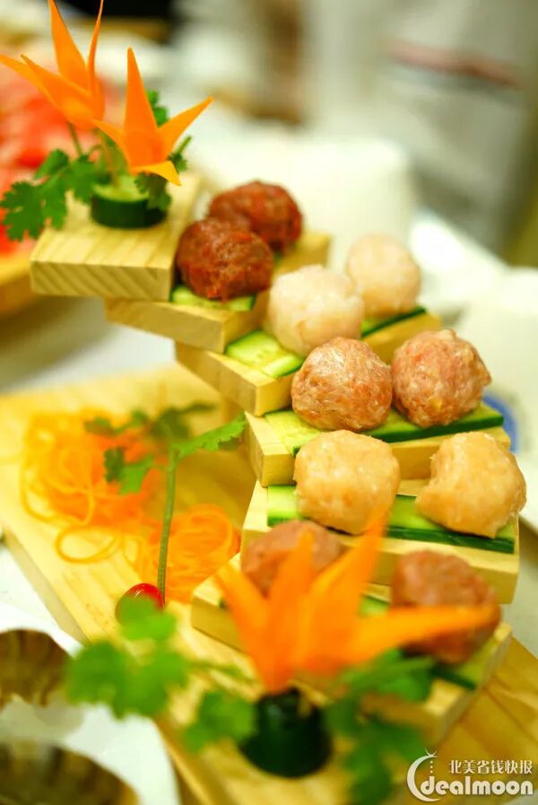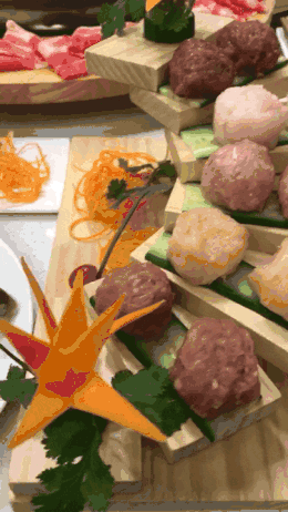 先来说一下肉~看看这个摆盘,超级拉风有木有,小伙伴统一的掏出手机拍照留念。牛羊肉都非常的新鲜,锅开后我们最先吃完的就是这圈肉,一点渣滓都没剩。