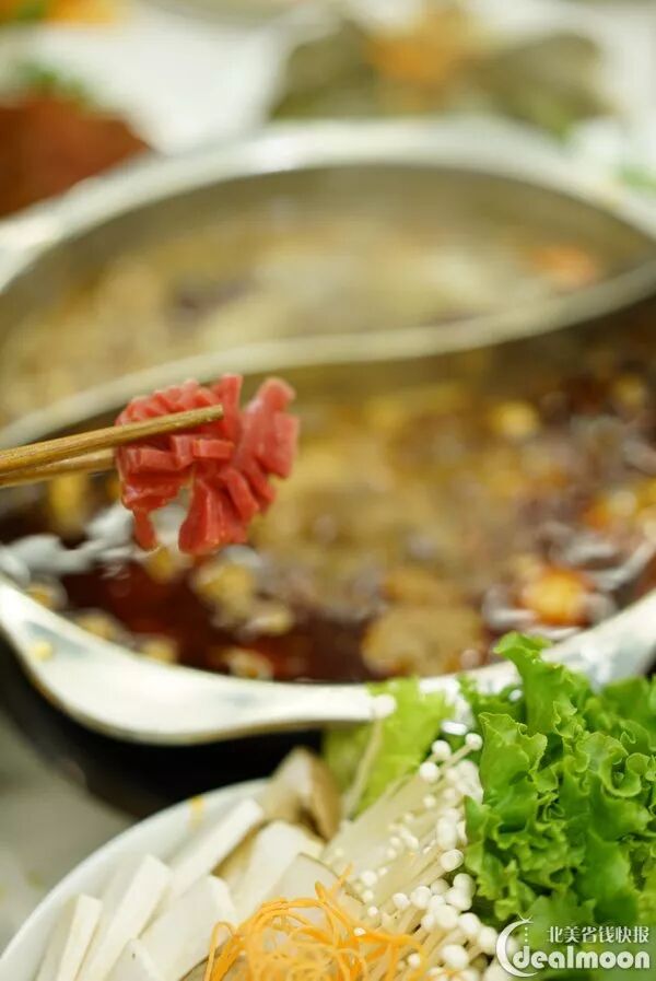 牛油锅底端上来是没有汤汁的,牛油小牛下面满满的川味底料,当真是让人食欲大振!之后在锅里加入高汤,小牛就可以在汤里欢快的“洗澡”啦!