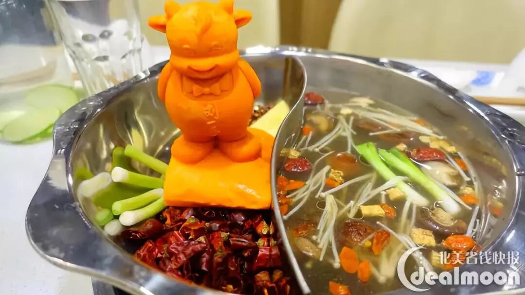 鸳鸯锅应该是多人吃火锅的标配了吧~ 这一次牛油红汤,看到这样可爱的小牛造型也是非常新奇。养生菌汤也是底料满满,可以感受到店家满满的诚意。