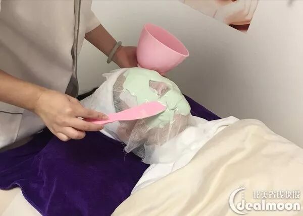 我敷的面膜是修复面膜,具有消炎作用的薄荷面膜。美容师先用纱布将我的脸小心翼翼地包起来,瞬间觉得自己像木乃伊哈哈,她说这是她在韩国学到的,她们上课的时候韩国老师教她们这招方法可以锁住水分不易流失。