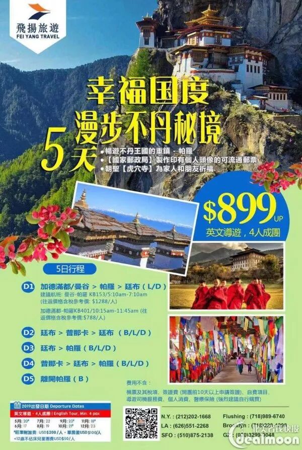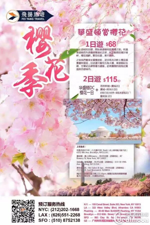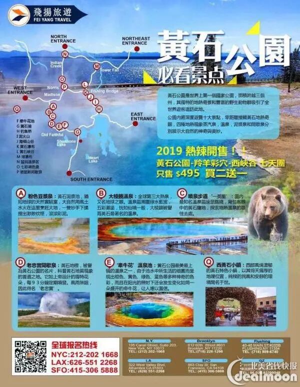 飞扬旅旅游成立于2004年到今已有15年,以专业、诚信为服务宗旨。总部位于美国纽约華埠,在紐約華埠,法拉盛,布魯克林,洛杉矶、三藩市和广州等地设有多间办事处,拥有24小时微信和电话服务。飞扬旅行社提供的服务包括特价机票、定制旅游、跟团游(美加经典线路、中国、欧洲、亚洲、澳洲等地区)、豪华邮轮(巴哈马、东西加勒比海、阿拉斯加、百慕大、以及欧洲经典线路)、代办各类签证和各类公证等。