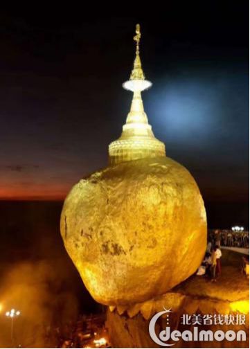这块像随时会掉下来,却仍有不少信众走到它那里贴金箔的大石,曾被Lonely Planet 当作封面,实在是一处奇异的美景大金石岌岌可危地矗立在山顶,其上还修了一座精致的佛塔。有人说,是佛发存放在石顶上的佛塔里,所以岩石才能保持平衡。