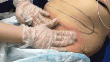 美容师手动对部位进行了进一步的按摩后,开始了第二个治疗头对上腹部位的治疗。