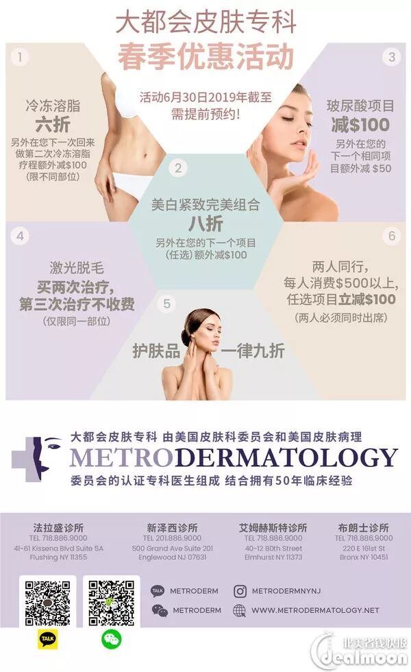 Metro Dermatology,大都会皮肤诊所,执业超过20年,拥有专业临床经验,在纽约及新泽西地区享有盛名。