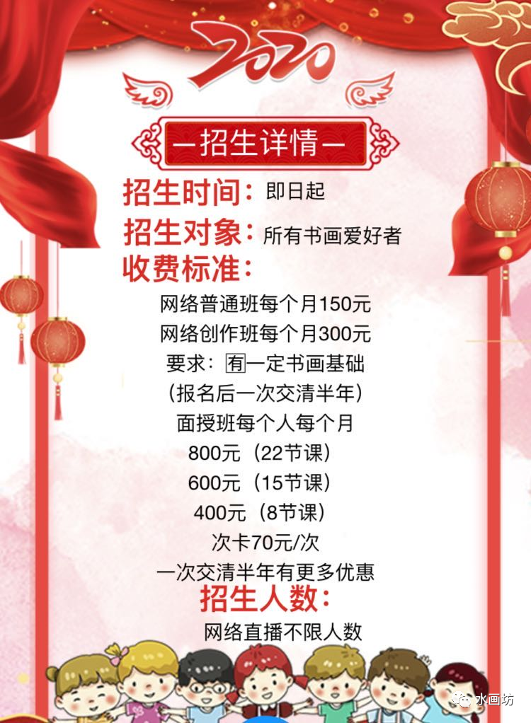 (2)朋友圈集赞满58个,报名出示截图即可优惠300元/人(关注公众号“水画坊”)