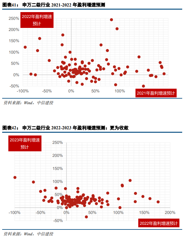 23年盈利增速预期排序:出行链(酒店/旅游/影视/航空)>新能源(电池/风电)、电子材料/光学电子>医药、医美化妆品 > 军工、汽车 >半导体、消费电子、光伏链 > 钢铁、水泥、工程机械 >白酒、啤酒、小家电 > 有色金属、农化制品>CXO、基建、白电、地产、煤炭、航运港口等