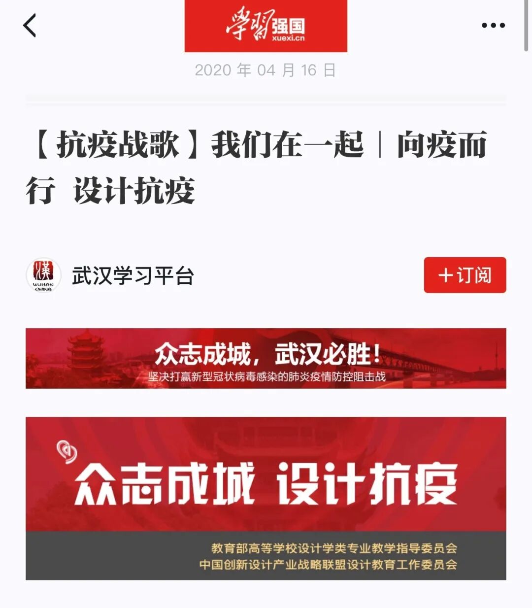 新冠肺炎疫情突发以来,举国上下同心战“疫”,共克艰难时刻。教育部高校设计学类专业教学指导委员会、中国创新设计产业战略联盟设计教育工作委员会,遵照国家“坚定信心、同舟共济、科学防治、精准施策”,坚决打赢疫情防控人民战争的指示,积极行动,引导全国设计专业师生用激情、智慧与创新,为抗疫贡献设计之力。