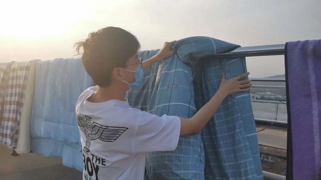 随着全国人民众志成城、团结一致疫情防控工作取得有效进展。5月12日,我校复学返校的准备工作拉开序幕,五湖四海的江财学子们正陆续启程,艺术学院征集多名志愿者为即将从远方归来的同学们发起一场爱心助力活动,志愿者们早早来到学校为后返校的多数同学嗮被子。