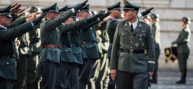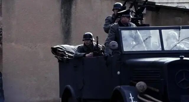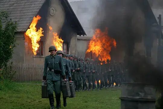 一队驻布拉格的党卫军和盖世太保从大路上开过来,肆无忌惮地闯进村庄,对这里的居民排好队逐一检查身份。
