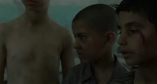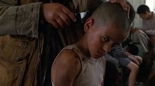 影片开头,脚跟有胎记的小男孩被抓着剃头。