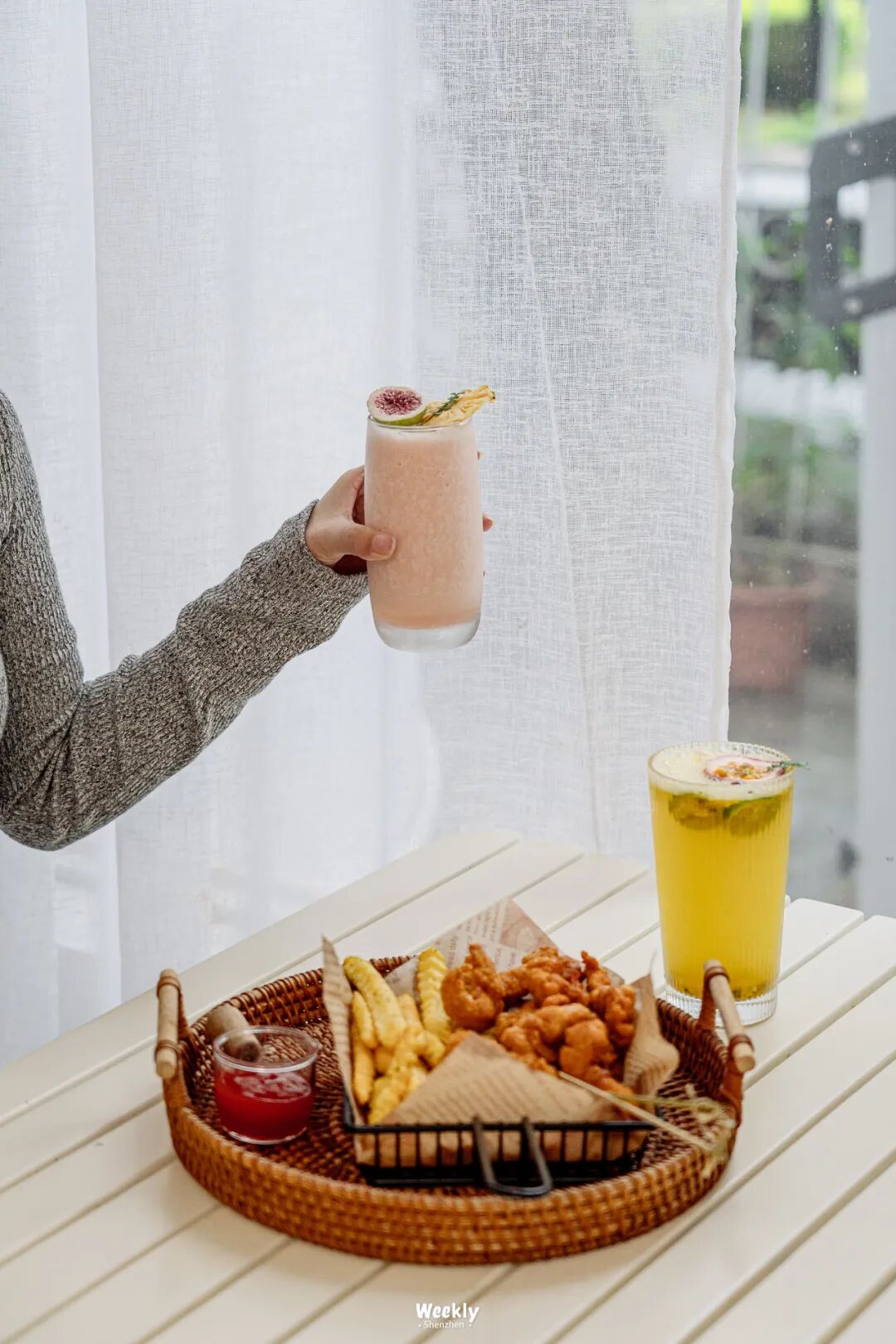如果你是奔着逛街来的,可以直上2楼,这里陈列了斐院主理人的独立品牌女装。他们家女装大多是不挑人的职场穿搭,价格在200-500之间,没有店员值守可以随意试穿挑选。原本我们对于他们家下午茶并不抱有期待,随意点了几样发现,他们家的饮品很符合绝大部分人口味,微甜带着清香,薯条和小酥肉也没有过多的粉感。看得出来主理人对食品的口味把控也有一定要求,即使专门来着hea个下午茶,也是个不错的选择。