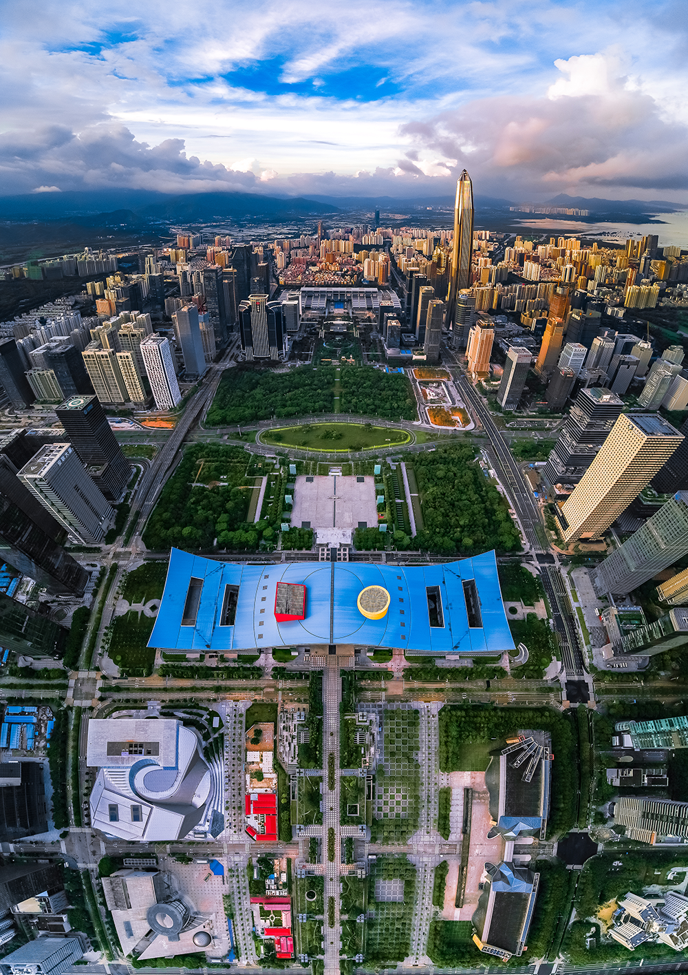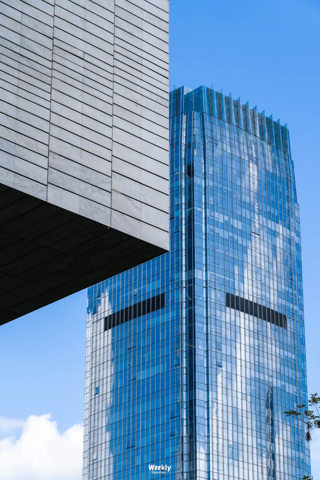 在福田,你经常会看见玻璃大楼映照着蓝天,形成有层次的颜色。