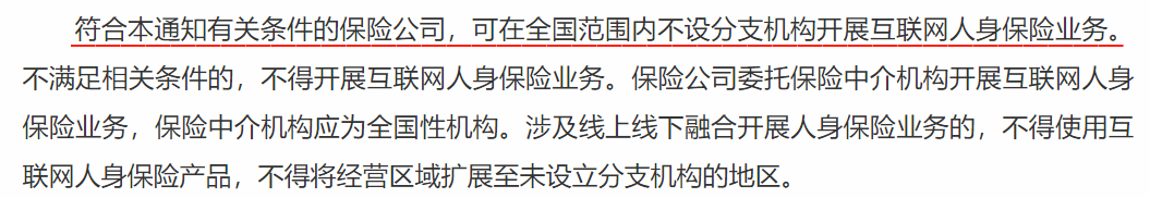 而这次的新规规定,只要保险公司符合条件(具体条件在第二、三部分讲),即便没有分支机构,也能在全国范围内卖。