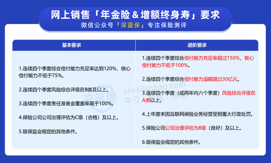 相比意外险、医疗险和重疾险,新规对在网上卖年金险和增额终身寿的保险公司,要求更高。