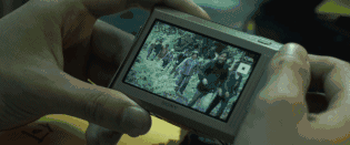 片中的主人公收到的一卷录像带中,人群身后也跟着一个红衣小女孩。