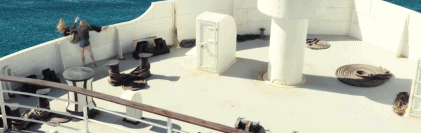 3)一路跟踪脸上流血女主,在甲板砍死留血女主并将之推落海;