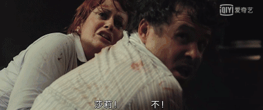 5)戴上面具想射杀夫妻俩,可是反被一型女主打伤,流了一脸血,只能摘了面具扔了枪,用刀子捅死夫妻俩;