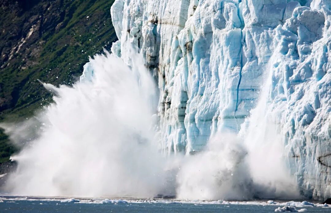 邮轮行驶进冰河湾国家公园(Glacier Bay National Park)里宽阔的水道里的时候,旅行者可以看到水面呈现出深邃的蓝绿色。星星点点的浮冰漂在水面上,冰的白色和水的绿色在耀眼的阳光下形成了强烈的视觉对比,两侧则是连绵的积雪山峦。
