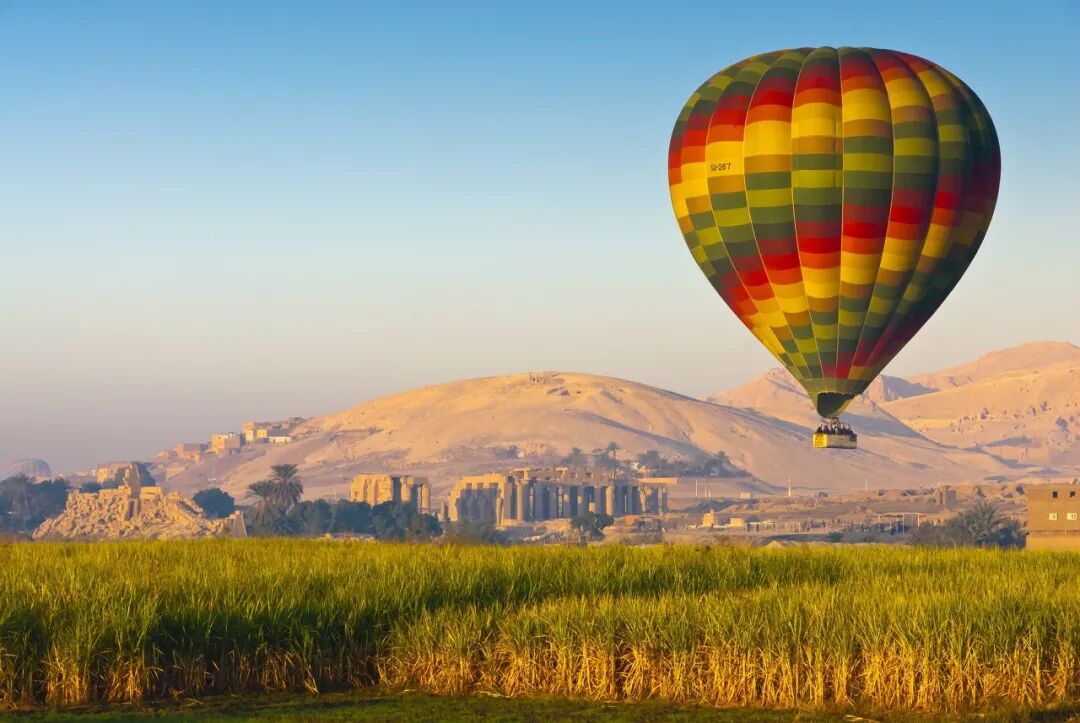 在卢克索坐上一次热气球可以算作可以一生回味的体验。如果凌晨四点起床出发,运气好时,可以在热气球上看到橙粉色天边的日出。随着热气球在空中逐渐升高,低头俯瞰,发源于埃塞俄比亚高原的尼罗河、雄伟庄严的帝王谷遗迹、以及被黄沙包围着的绿色植被群都尽收眼底,让人回味无穷。
