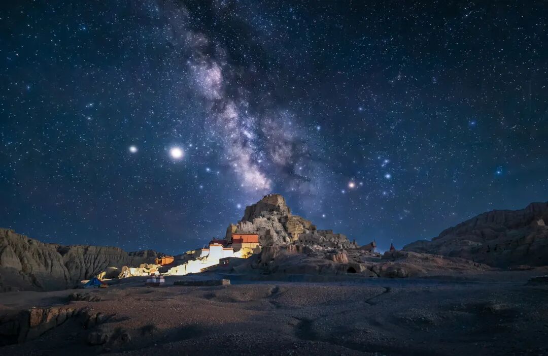 公元895年,吐蕃王朝分崩离析,西藏迎来了群雄割据时代,朗达玛的一支后代向西逃到阿里,与当时的象雄王结亲,后来朗达玛的三个儿子分别占据了阿里三处封地,其中以古格王朝最为强盛。绵延700余年的历史,为这片土地留下了独特的建筑艺术和文化习俗。如今在札达县城方圆数十公里的范围内,古格王朝的宫殿、佛寺、洞窟星罗棋布。整个遗址建在一土山上,建筑分为上、中、下三层,依次为王宫、寺庙和民居,反映了当地藏族价值观与外来价值观文化交流的辉煌成就。
