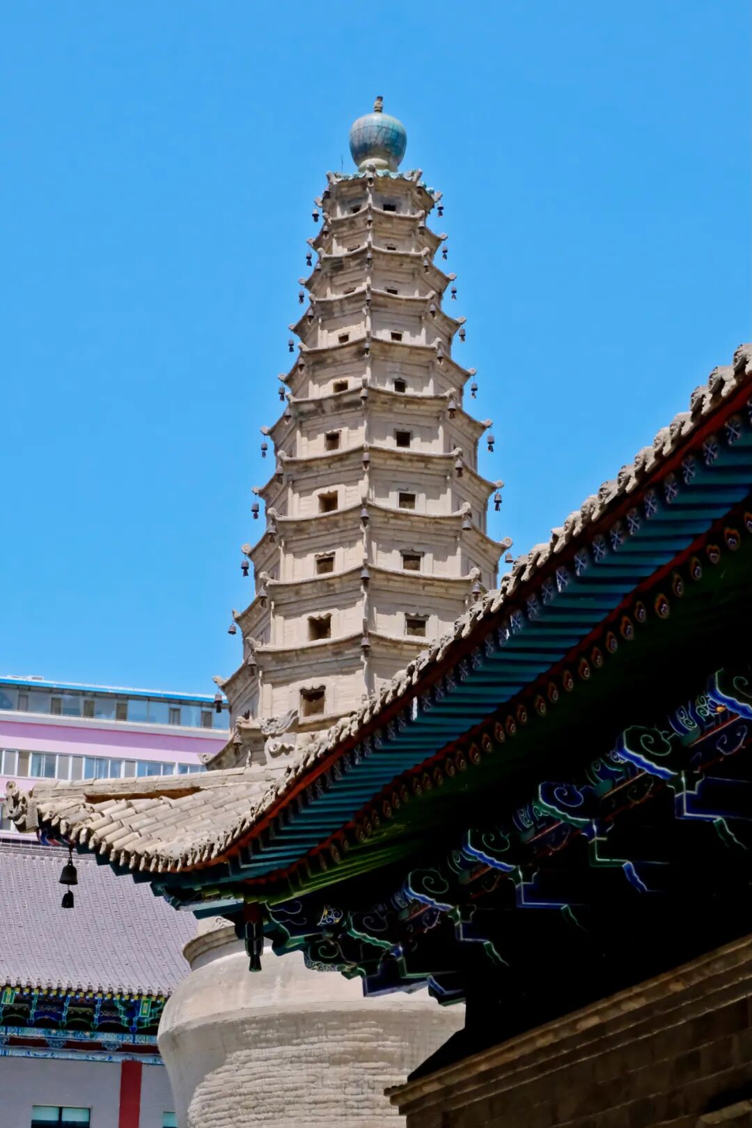 兰州市博物馆是一座地方性综合博物馆,建在明代白衣寺旧址,院内正中央矗立着一尊高约30米的白衣寺塔。塔身上半部为八角形锥体,共12层密檐,每层每面各开1个佛龛,内塑1尊佛像,共96尊。四周的展厅都位于古色古香的老建筑之中。
