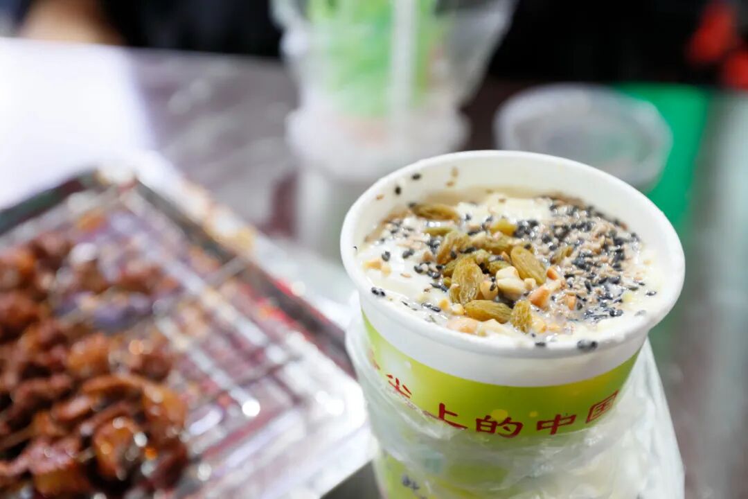 灰豆子可谓兰州的“隐藏菜单”,是用麻色豌豆煮成的粥状食物,也非常适合当作早餐。用冰糖水熬制的豌豆非常软烂,豆皮都已经捞了出来。豆沙汤好喝,豆子沙沙绵绵,配上甘肃当地的小枣软糯香甜,让人欲罢不能,也非常清热消暑。 牛奶鸡蛋醪糟