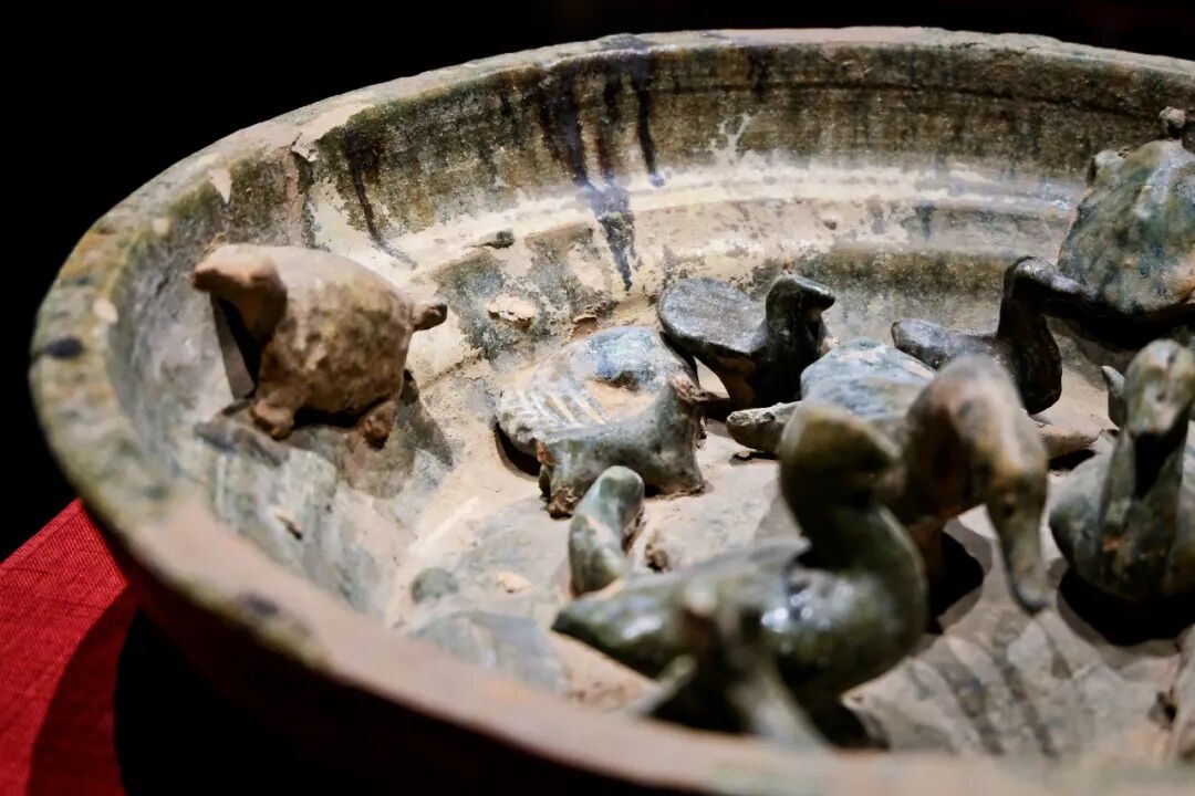 博物馆二楼的右侧是古生物化石展厅,这里陈列着大量甘肃境内的古生物化石标本。左侧是丝绸之路文明展厅,里面有汉唐丝织品、金银器、唐三彩等珍贵文物。而青铜器区域,则是观众最多、最值得期待的地方,因为这里陈列着那尊著名的铜奔马(马踏飞燕)。