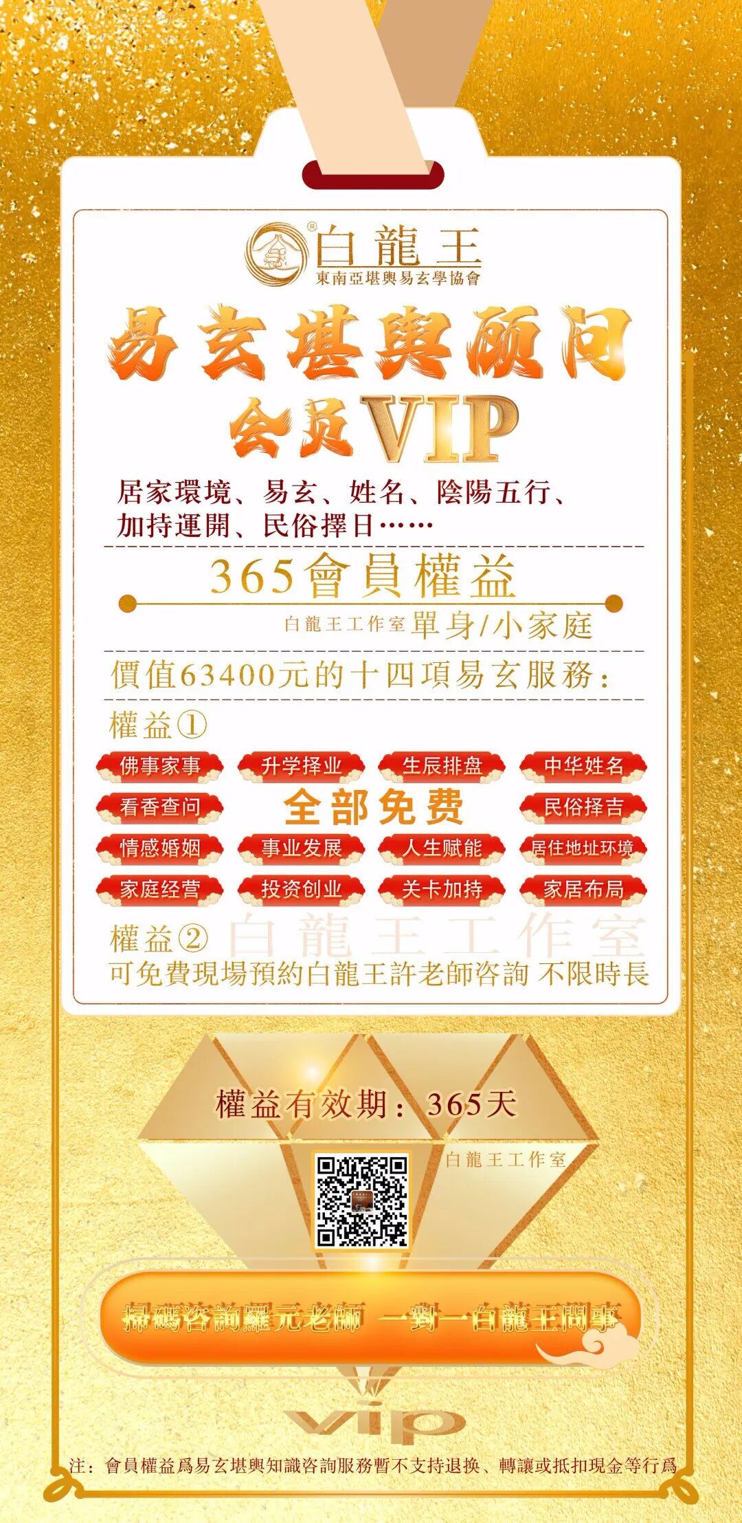 命运真的很复杂,流年、小限的交错变化更难掌握,如果你希望在人生之路上多发现好机运、好贵人,加入【白龙王易玄堪与顾问会员VIP】,365天会员权益,居家环境、佛家问事、升学择业、事业发展、阴阳五行、加持开运、民俗择日、情感婚姻等,可免费预约白龙王许老师咨询~