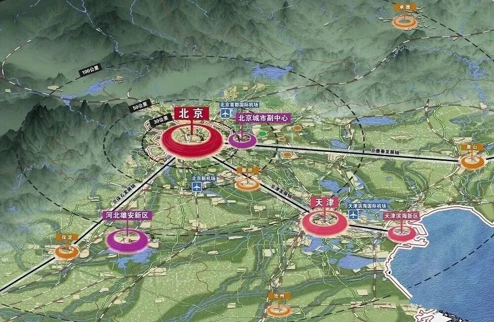 而「东进南下」的三个战略支撑点就是东边的通州副中心,南边的新机场和雄安新区。