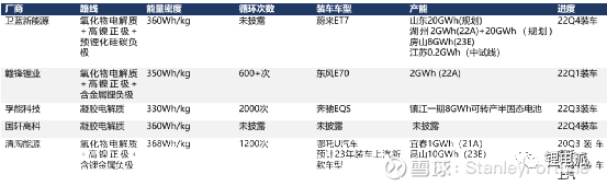 产业化情况:据公司公告,公司360Wh/kg高比能半固态电池通过新国标安全测试,已经进入产业化阶段,首批电池已获得某高端新能源汽车企业的量产定点,配套车型的电池包电量达160KWh,续航里程超过1000km。产品22年底实现装车,预计23年批量交付。