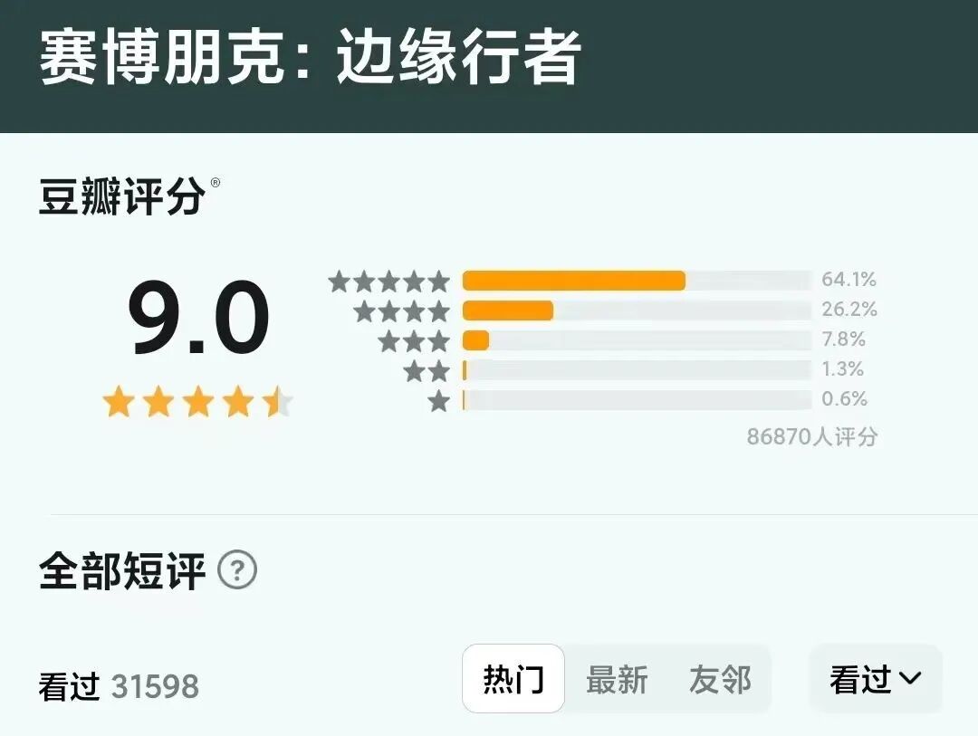 简要介绍《赛博朋克:边缘行者》:豆瓣评分超高的高口碑游戏衍生剧集