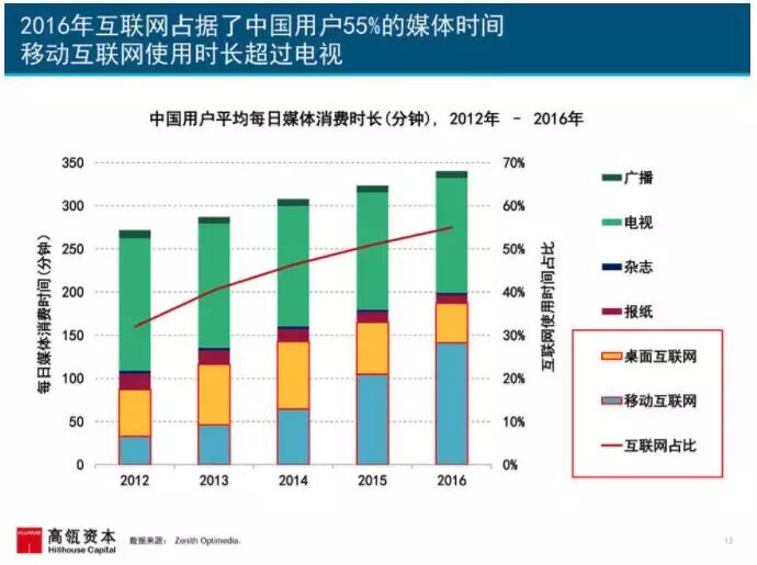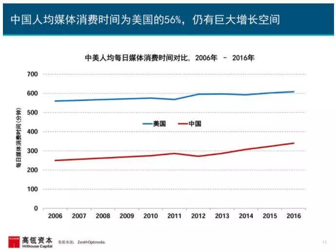 2016年中国移动互联网用户量破7亿,同比增长12%,高于2015年11%的增速。2016年移动互联网用户每日在线时长合计超过25亿小时,同比增速高达30%。在中国在线娱乐市场,产品创新驱动了用户数量、使用时长与变现能力的强劲增长。
