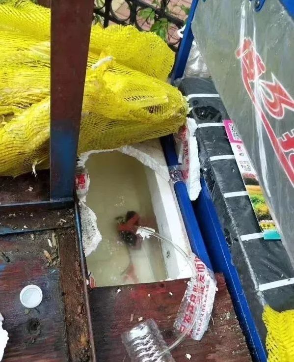 泡沫箱里的液体,浑浊且略带黄色。执法队的工作人员低头去闻,水中还散发出一股异味。