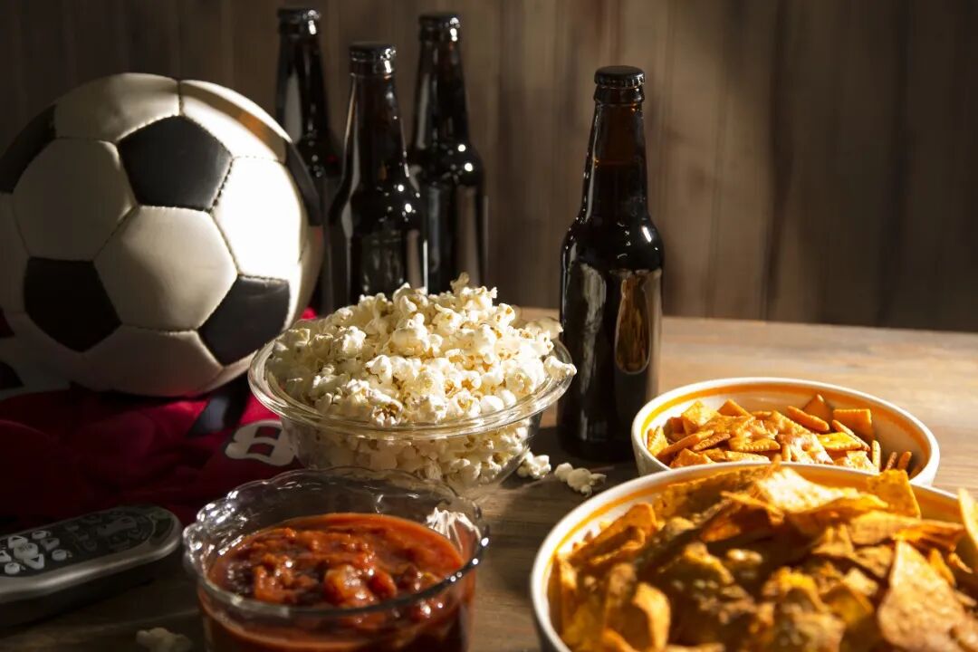 越到夜晚越兴奋的球迷们,还会提前储备好豪华夜宵。花生毛豆冰啤酒,几乎是深夜看球的标配。