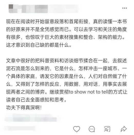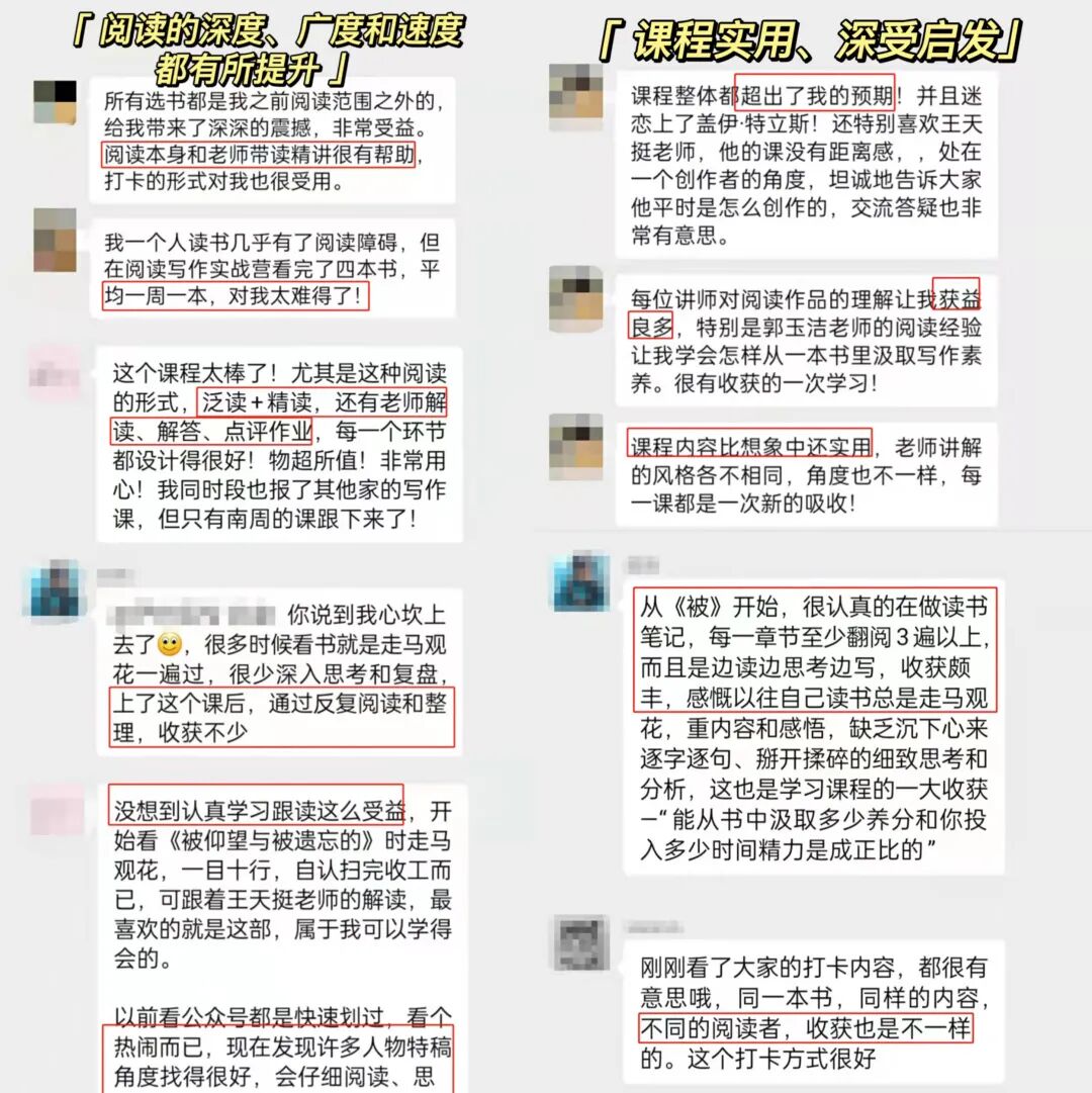 不少学员在课程结束后,不敢相信“自己竟能在这么短的时间内读这么多书”,“以前看报道只觉得好,现在能看出好在哪里了”,老师的作业点评更是让他们“醍醐灌顶”。一位教授阅读课的中学语文教师,甚至打算将自己学到的新方法运用于教学:讲师们几乎从写作的角度,重构了我对这本书的理解,他们的阅读写作观念更是给予我全新的认知。
