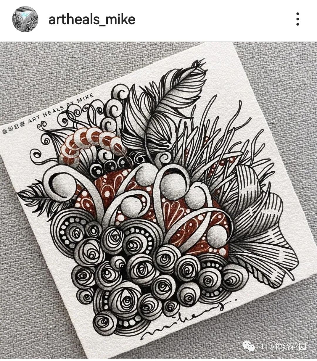 图样本身就是你的“色彩”。今天一起禅绕画:尖尾花