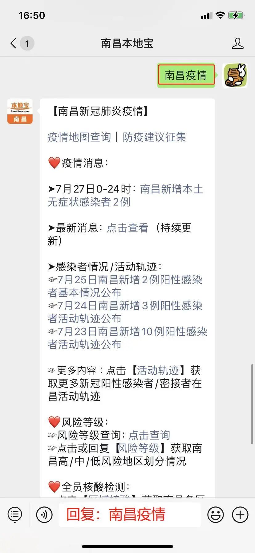 回复南昌疫情:获取南昌疫情最新数据、活动轨迹