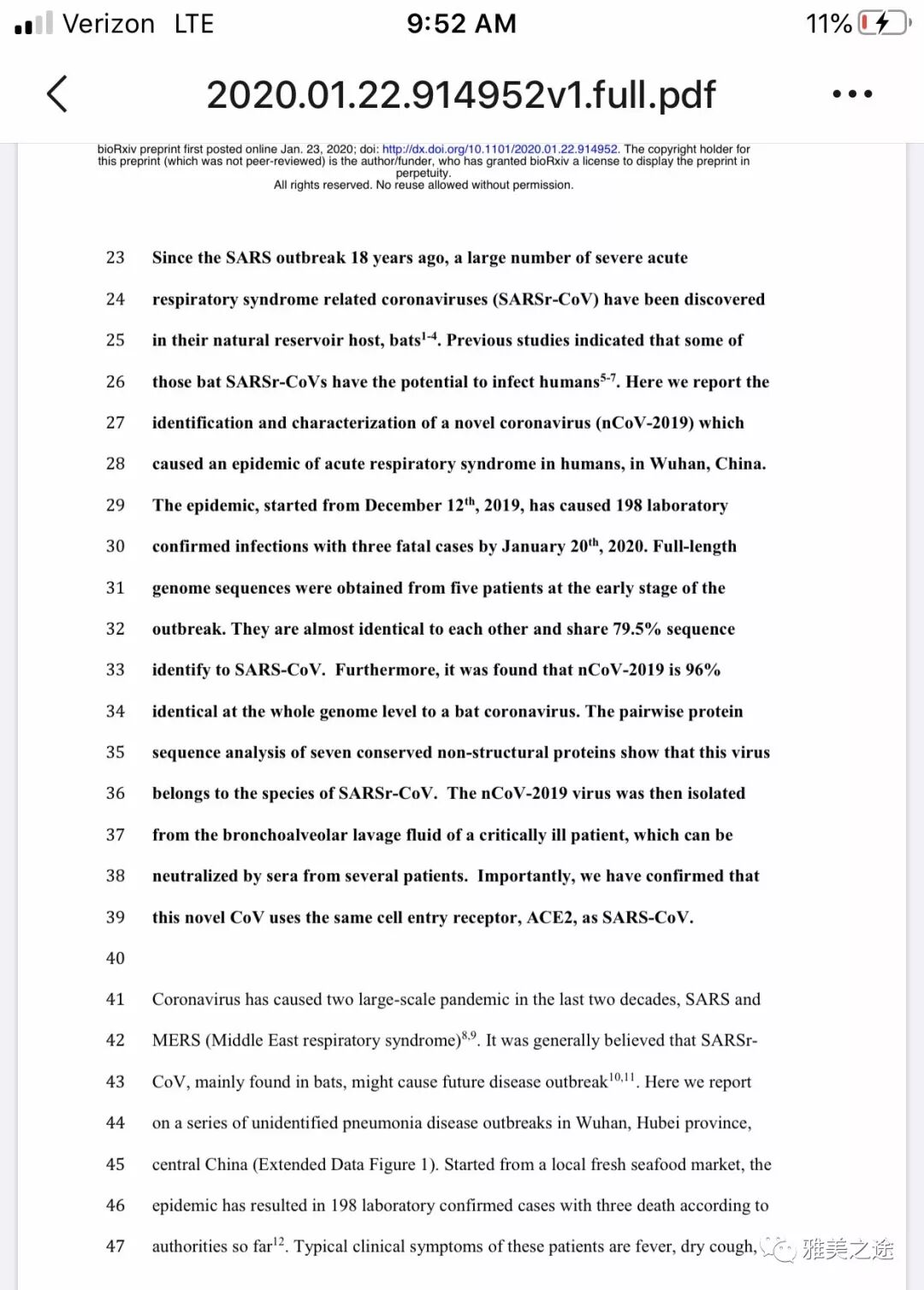 先读这段转述:“刚听完武汉市内防疫系统内部会议的录音:已经定名为SARI了,确定是SARS的进化病毒,致病机理完全相同。病毒进入人体后干扰免疫系统,让免疫系统误认为肺细胞是外来物从而发起进攻。病人是被自己的免疫系统杀死的,目前市面上所有的药物均无效,只有采用与SARI相同的方法:用激素压制免疫系统,但同时,人体会非常脆弱。同时,这个病毒比SARS更聪明:1.潜伏期更长;2.有患者从感染到发病,再到死亡,体温始终是正常的,也就是说,发热不是该病的特征症状,通过体温筛查不能确保完全筛查,这也是封城的原因。3.传播速度更快,目前只获得空气传播的证据,但不能明确日否还有其它途径。”