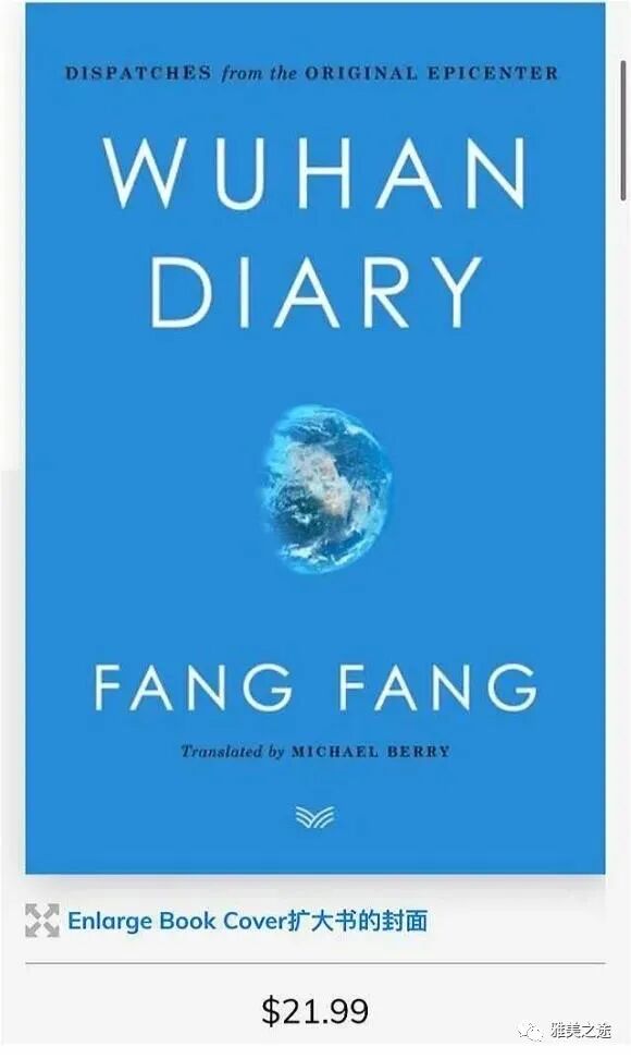 有人对方方日记英文版的副标题不满:“Wuhan Diary: Dispatches from the Original Epicenter”,我没有觉得这副标题有什么错。与我说的还是蛮相似的,我在上篇文章中这样形容华南海鲜附近的汉口:“The Ground Zero of the World’s Pandemic”。在压力下似乎副标题会改为:“Wuhan Diary: Dispatches from a Quarantined City”, 懂英文的人去自我解释吧。
