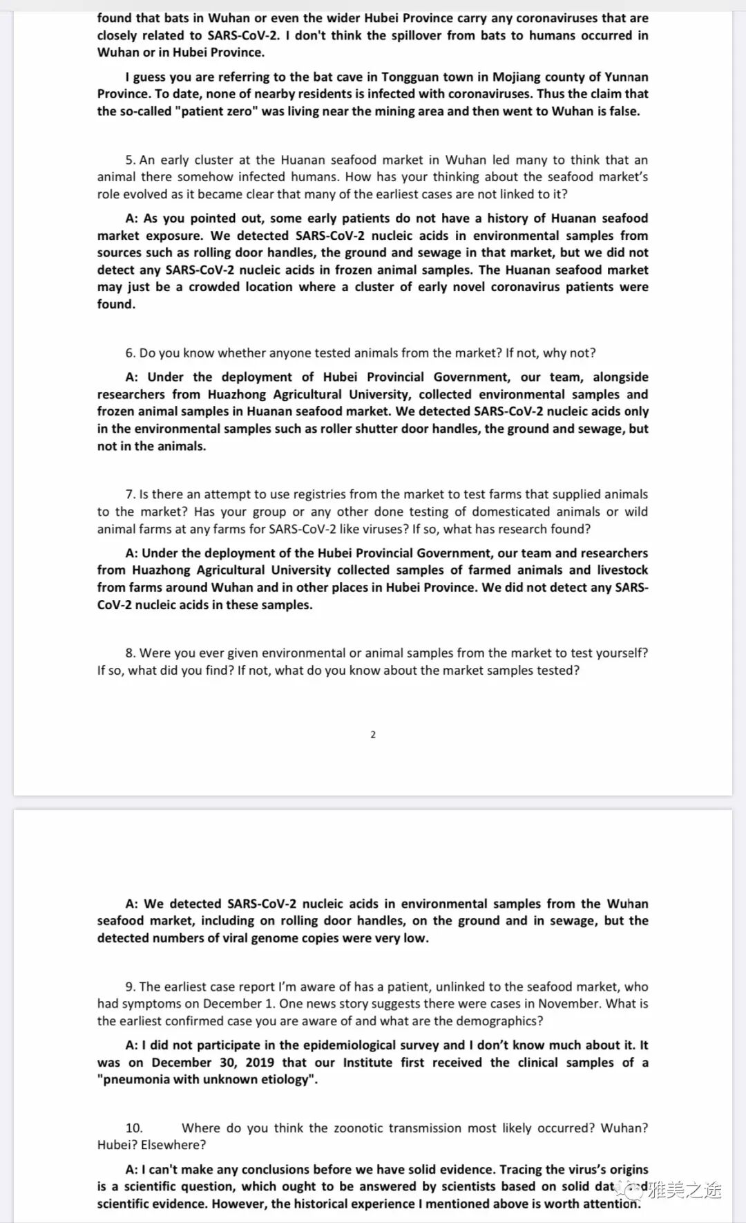 另外,我也想对正石丽给些建议。在病毒的起源上,她不应该随任何政府起舞。首先应该肯定最先检测到的病毒是在中国武汉,至于是否为最原始的起源地还有待科学研究与调查。当然这需要时间,但是现在我们是搁置起源的无聊争论,全力抗新冠的时候。在回答武汉疾控中心等其他机构是否存在泄露时,石正丽也不能替别人那么肯定地回答“没有”,因为必竟不是自己所涉及的。