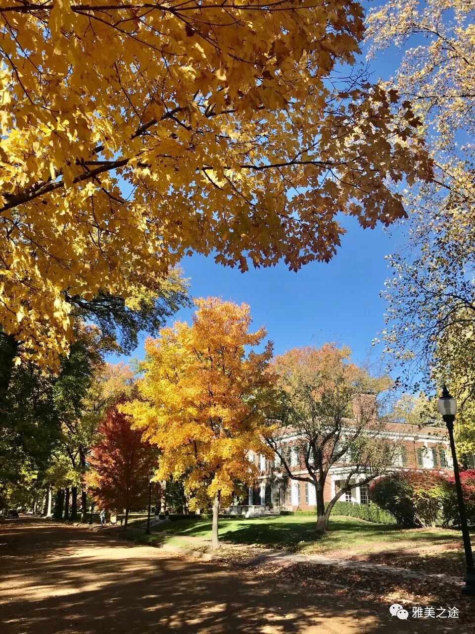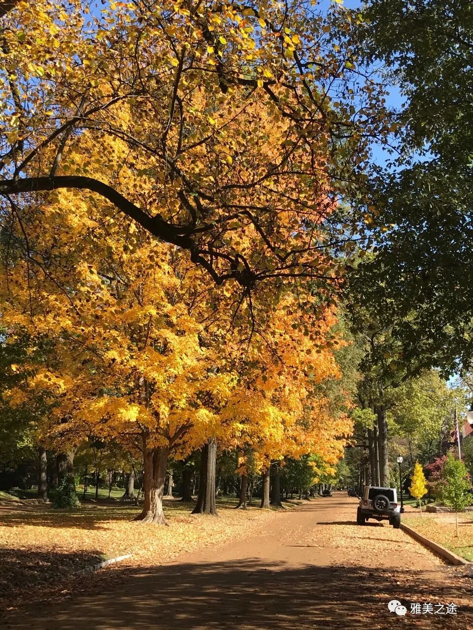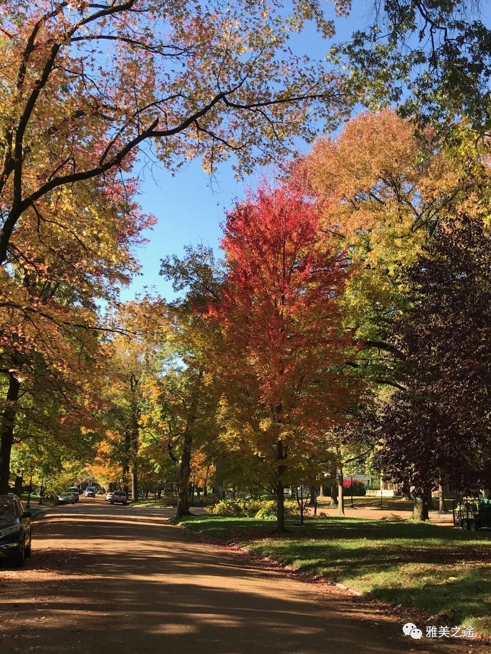 这里树种的选择考虑到相当的多样性,红叶与黄叶的外观肯定是因为里面的色素不同决定的,什么时候落叶也有生物钟的控制。古董社区中间那相当于至少两轮高速公路的绿化带为董事会的功劳,临马路的草坪也不是自家的,但是种什么树可以与董事会讨论,古董房周围的树种则完全是自家的品味。我还拍到一颗很小的银杏树,它们的浅黄色树叶只在11月的某天统一谢幕,圣路易斯华大图书馆的东侧也有两排这样的银杏树。