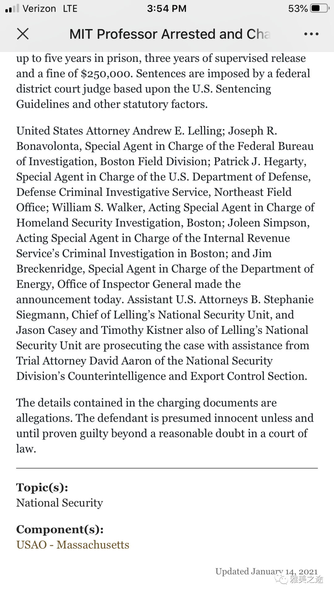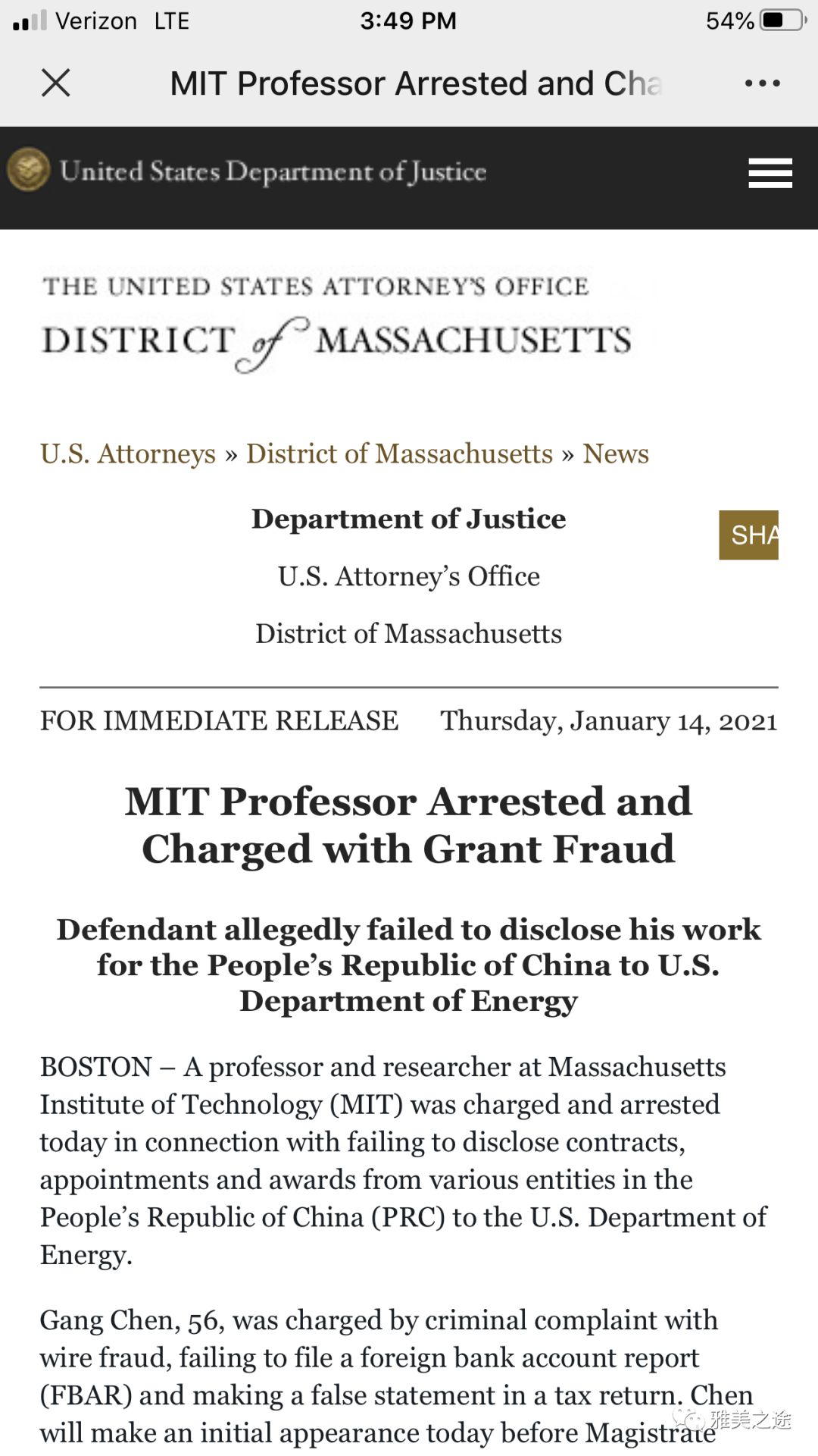今天收到这个令我震惊的消息,川普当局在离任的前几天,逮捕麻省理工学院机械系前主任陈刚。陈刚是华中科技大学的杰出校友,美国工程院院士。这消息是我的武大朋友,也是华大MD和斯坦福老爸提供的,他不是为了黑华中科大吧?