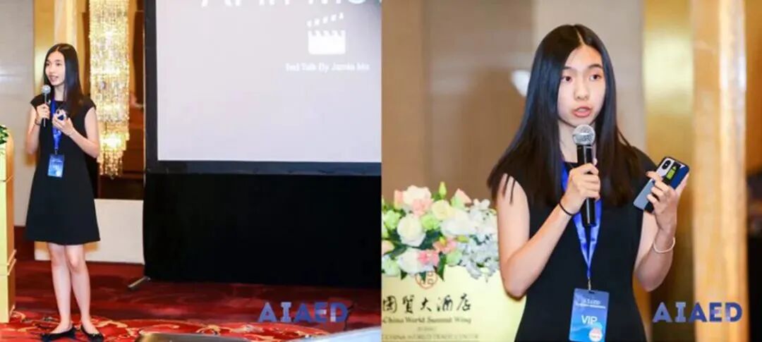 喜欢电影的莫嘉筠在全球AI智适应教育峰会做AI技术在电影中应用的演讲