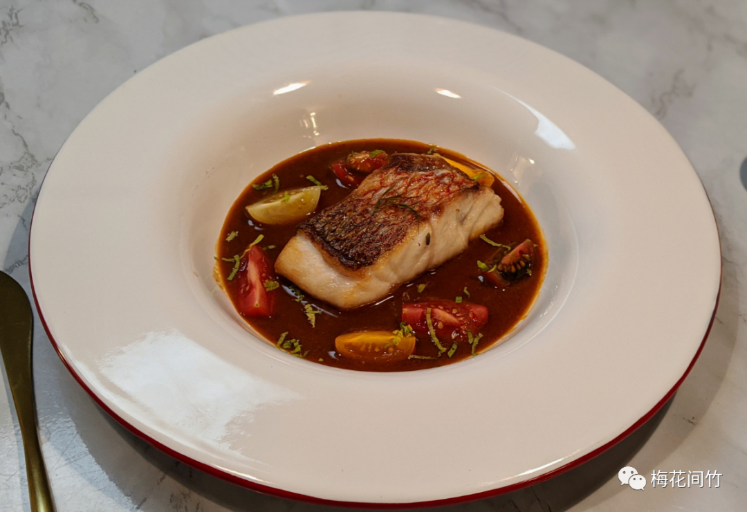 然而,厨师并不仅仅是满脸油烟地颠勺做饭的工具人,真正优秀的厨师,如小球,把她对传统文化的思考和对世界的包容都放进了这小小圆碟之上,让食物来表达她对生活的一丝不苟和激情。煎得刚刚好的红鲷鱼,配上酒酿和豆瓣为底的酱汁,是整晚味蕾最爆炸的时刻,也是大陆文明与海洋文明的又一次对撞。在全球都笼罩在新冠疫情里的今天,身为武汉人的小球,怎能不做一道热干面呢?当然,我打死也不会想到,以“粗糙而浪漫”代表武汉人性格的热干面,竟能有一天变成这般优雅端庄。更加迫不及待要等她的餐厅开张了!(在东村NYU附近,装修中,疫情过去就会恢复施工)