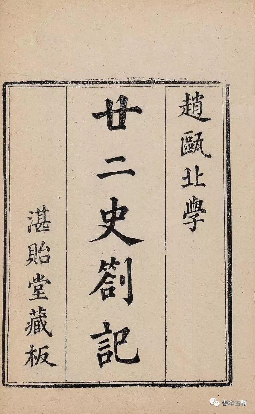 《廿二史札记》流传的版本主要有嘉庆五年赵翼的自刻本,收入《瓯北全集》,称为湛贻堂本。后来翻刻本很多,以光绪二十六年(1900年)广州广雅书局和光绪二十八年湖南新化西畲山馆刻印的二种为最佳。一九三七年商务印书馆据《史学丛书》本排印,列入《丛书集成》;一九五八年再版过一次。一九六三年,中华书局据《瓯北全集》原刻本,校正商务印书馆旧版重印。一九八四年王树民先生以《瓯北全集》原刻本、光绪二十六年广州广雅书局本和光绪二十八年新化西畲山馆本三本互校,择善而从,著成《廿二史札记校证》(1984年中华书局版),是一部有价值的校证本。(易明)