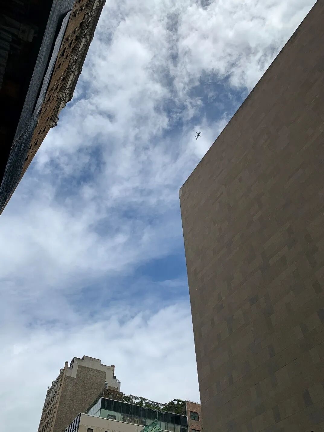 不堵车的曼哈顿真好,我们顺利到达目的地,顺利办完事情,看看时间还早,心里想,回程一定会和来程一样顺利。下得楼来,隐约听见直升飞机在轰鸣。细细想来,其实来时就听见了这种轰轰声,只是当时天上还有乌云,只听得见轰鸣,看不见飞机。现在云开雾散,很清楚,这是直升飞机,我还漫不经心地想,这几架飞机,不知道是警方的,还是媒体的。