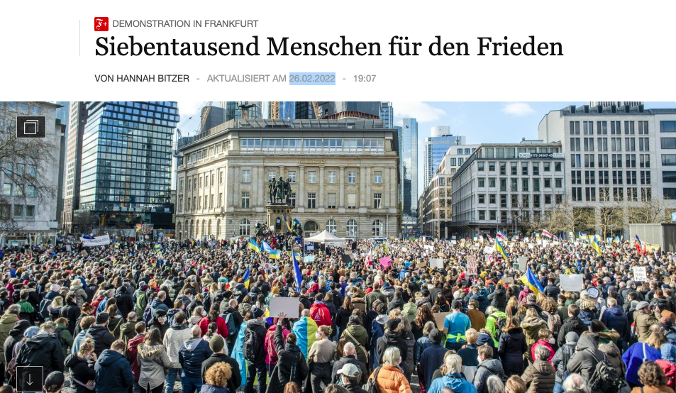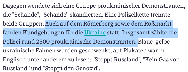 1.)当天,法兰克福举行了三次游行。一次亲俄,两次亲乌。