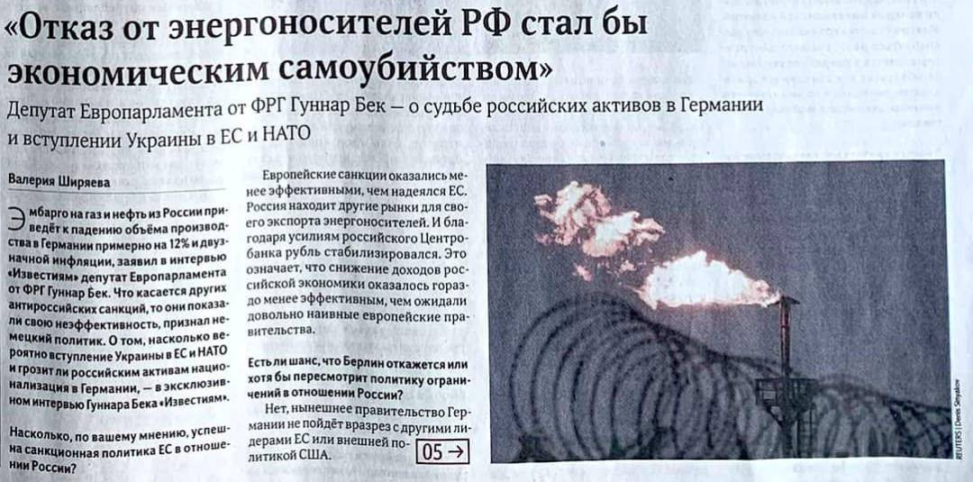 文章标题: "放弃俄罗斯的能源将是经济自杀。"